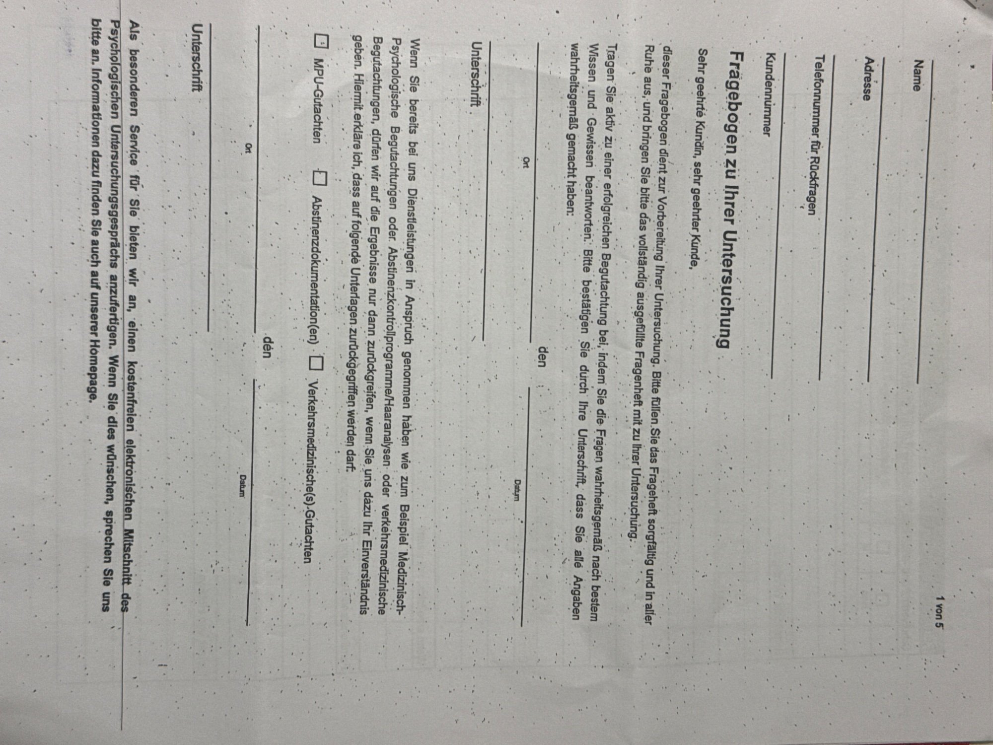 Doch genau heute Mittag habe ich die Einladung vom Institut AVUS Hamburg für meine MPU erhalten – mit dem offiziellen Fragebogen und dem Termin.