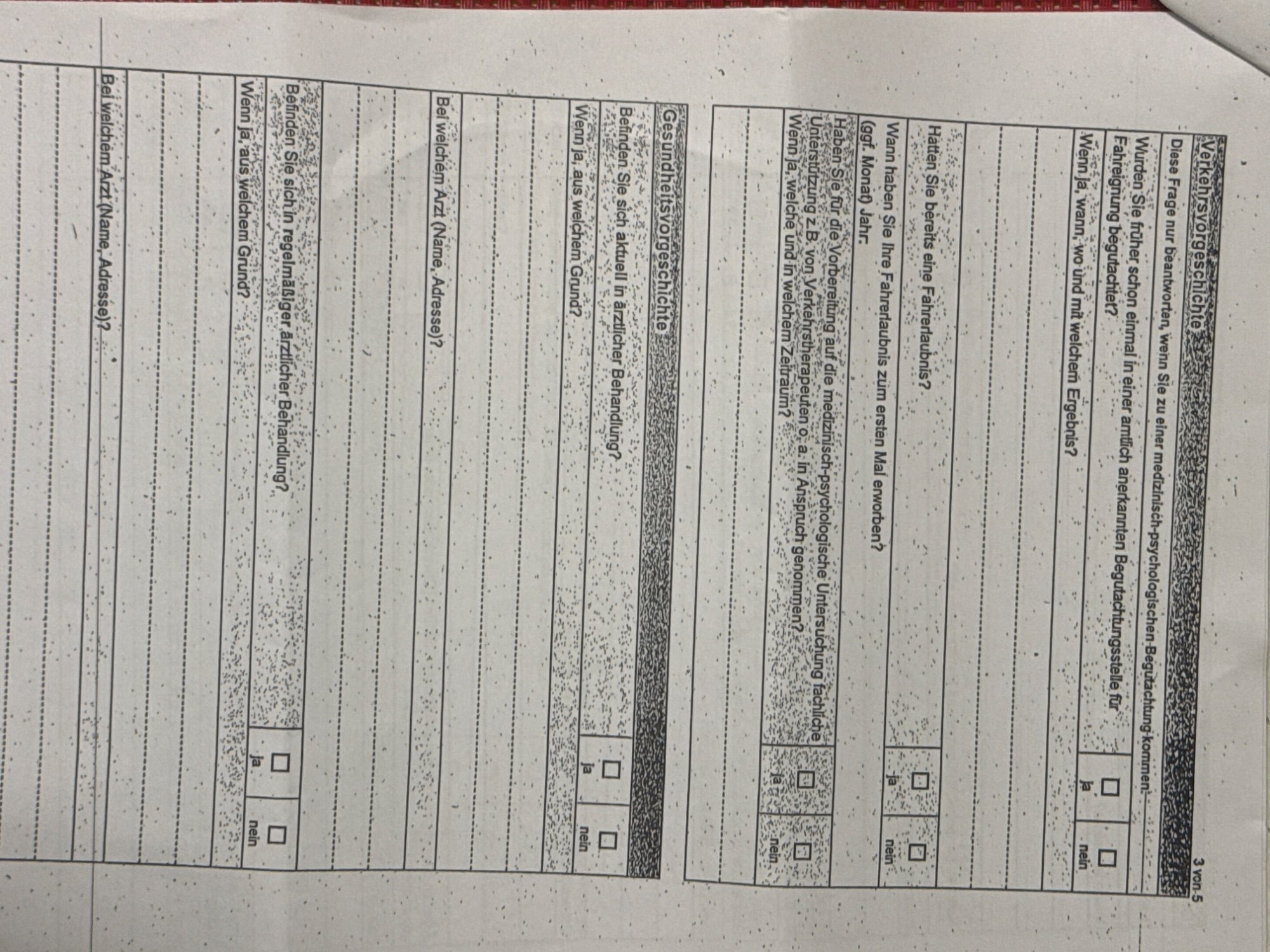 Psychologe/Verkehrspsychologe: ja, seit Januar 2025 fünf Sitzungen bis Juni 2025 bei einer spanischsprachigen Verkehrspsychologin (online)