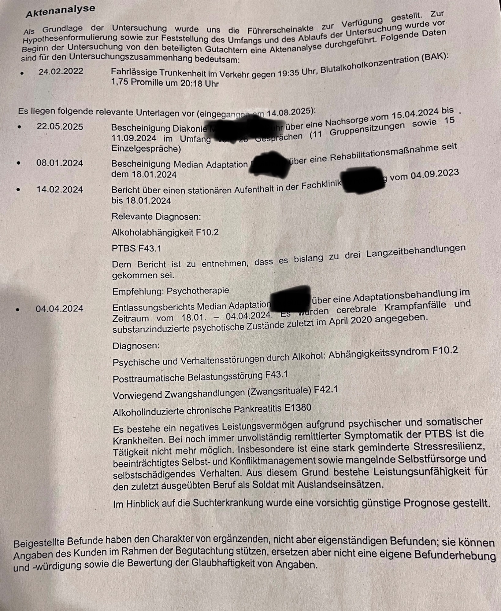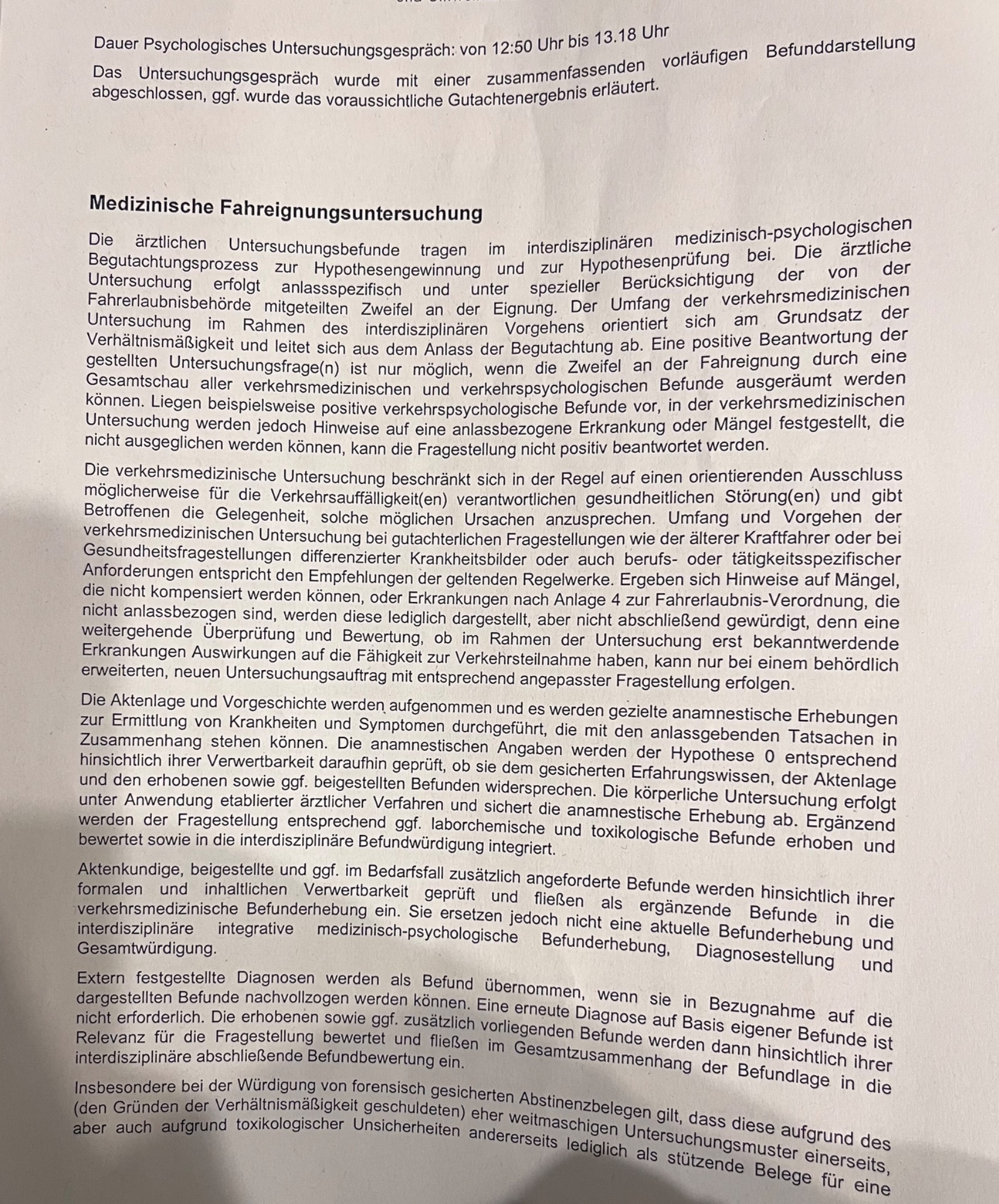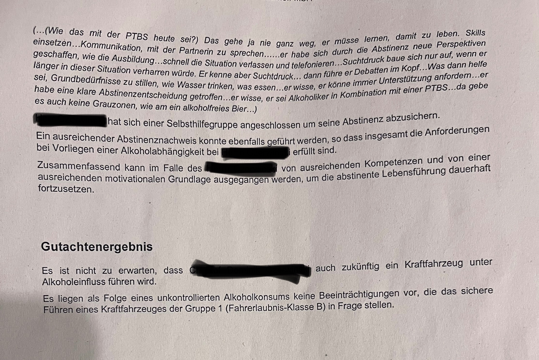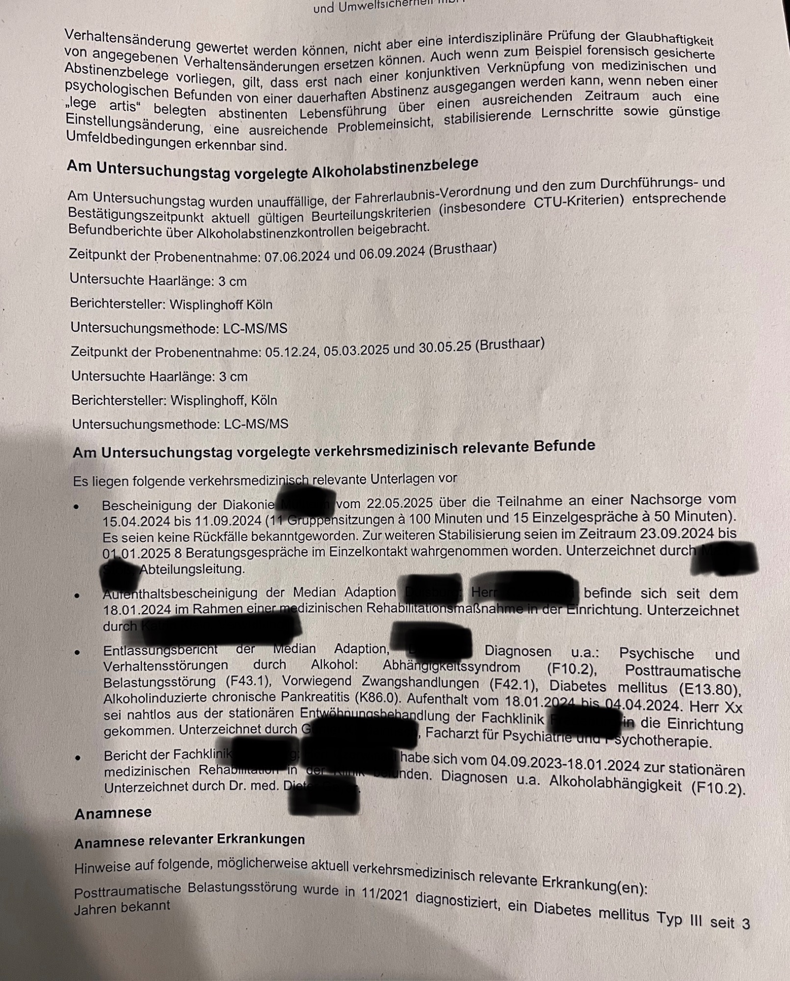 Ich hab aktuell keine weiteren Belege. Ich habe alles an Berichten bei der MPU abgegeben