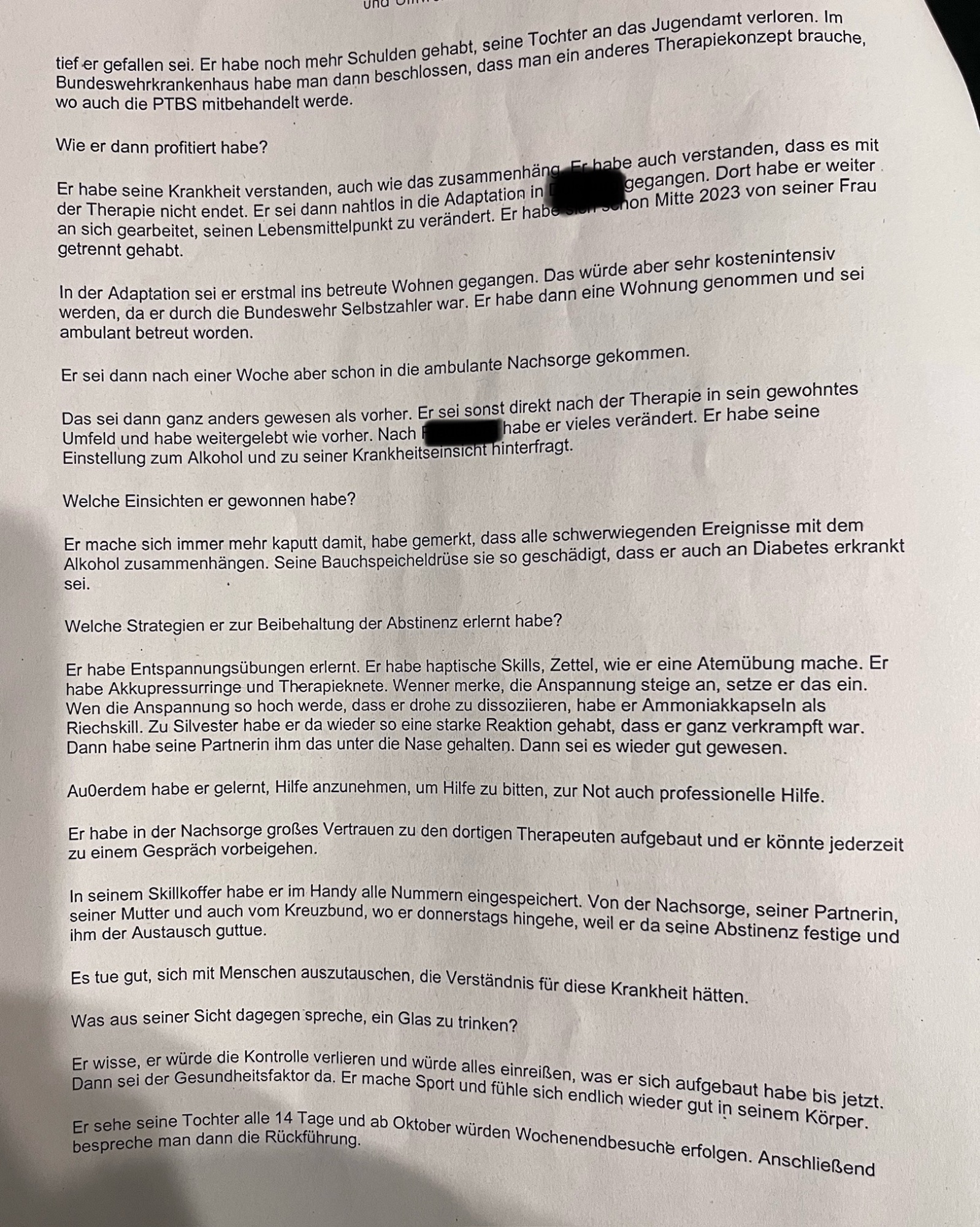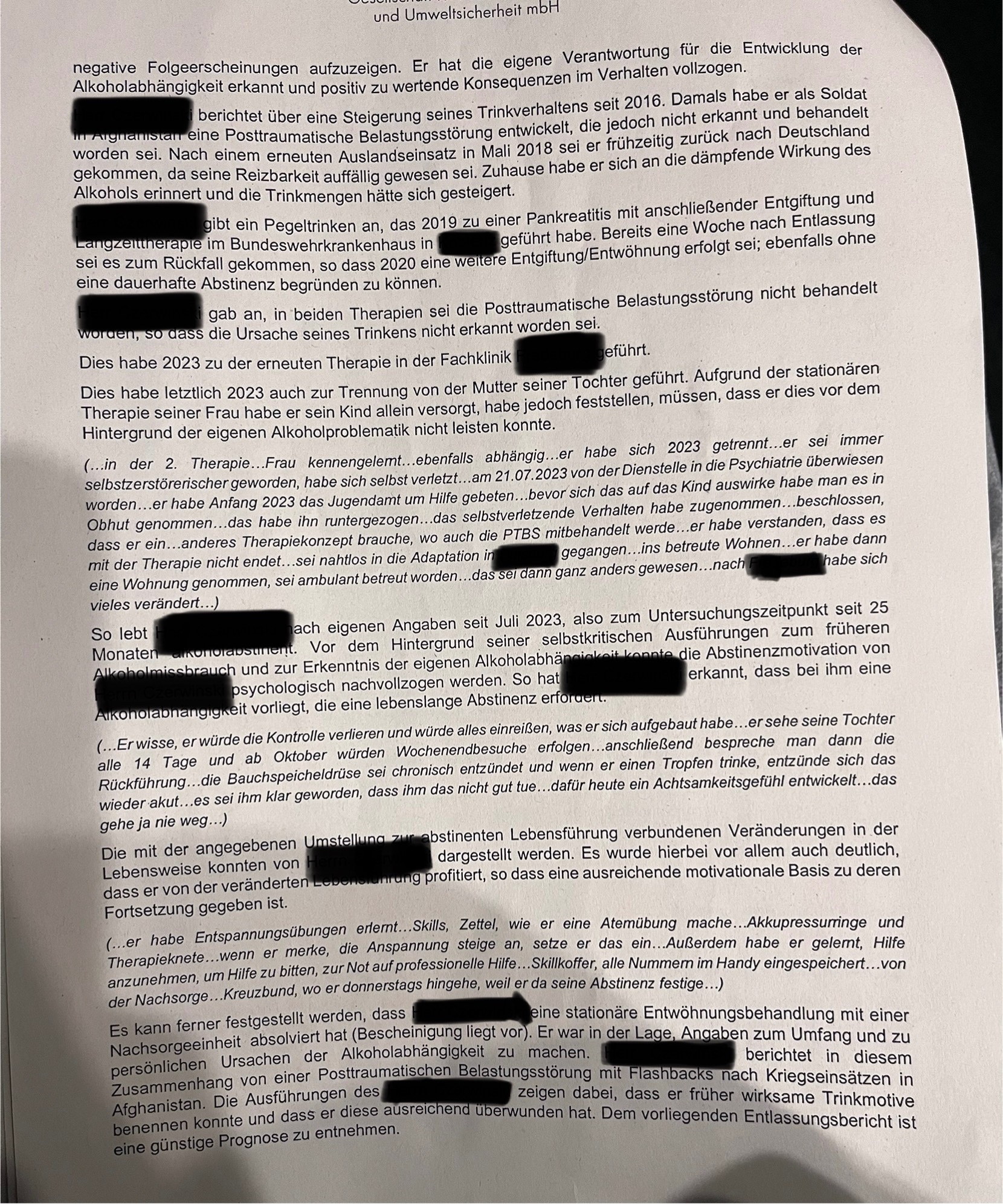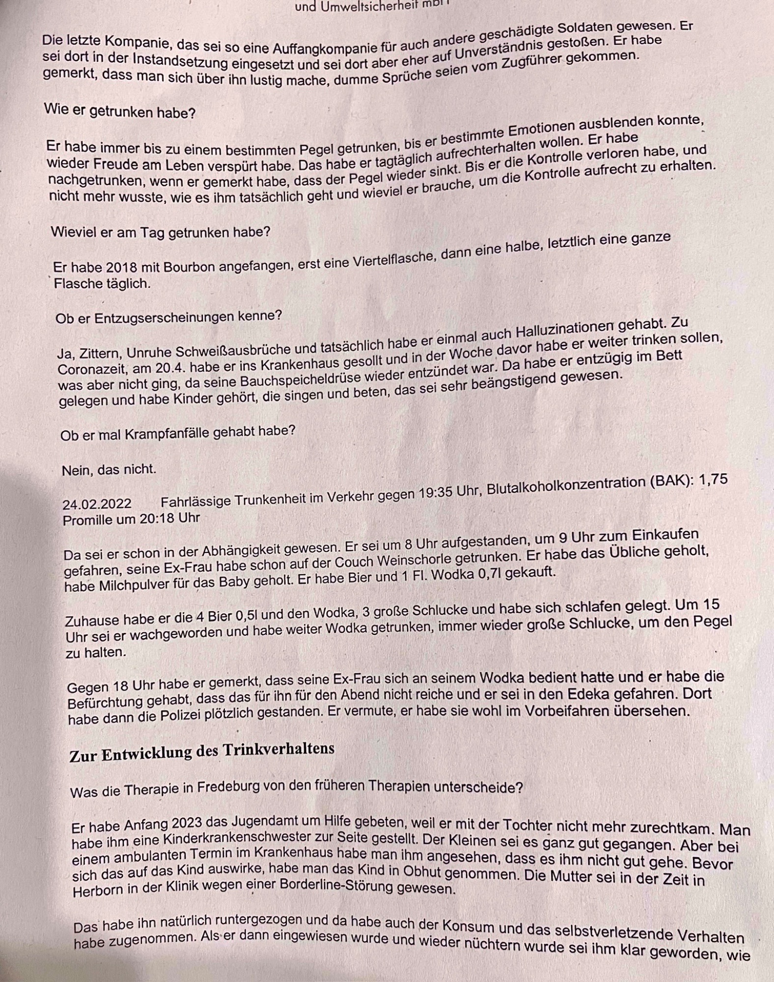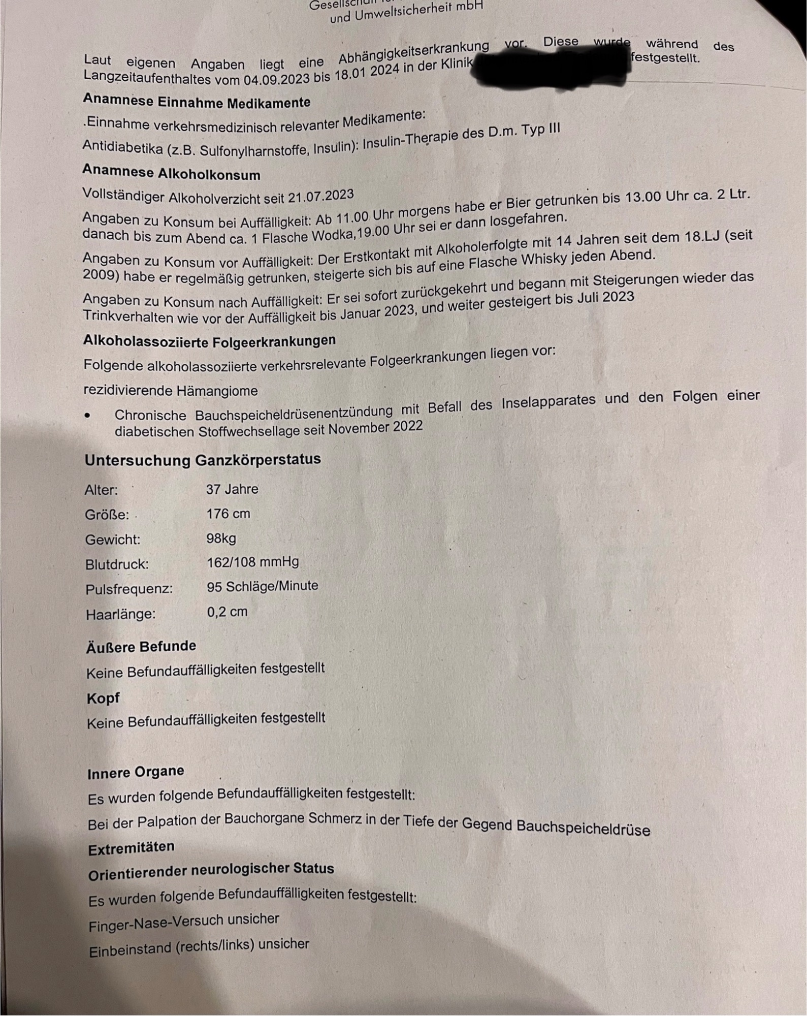 Ich hab aktuell keine weiteren Belege. Ich habe alles an Berichten bei der MPU abgegeben