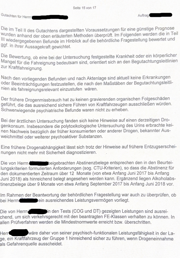 Bezahlt ist es jetzt und ich habe Ende Januar den Termin für die MPU. Abstinenznachweise habe ich vollständig über 15 Monate per Haaranalyse (Drogen). Alkohol AN habe ich wie KarlHeinz empfohlen hat nicht gemacht, da meine Beraterin die selber früher Gutachterin war mir gesagt hat das ich mir die zusätzlichen Kosten sparen kann.