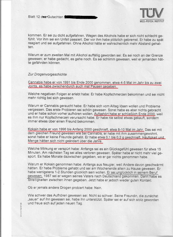 Hier fehlt ein sehr wichtiger Satz ... "Durch die strikte Einhaltung meiner Abstinenz."41. Wie wollen Sie es gegebenen Falls in Zukunft verhindern, nochmals unter Drogeneinfluß ein KFZ zu führen?