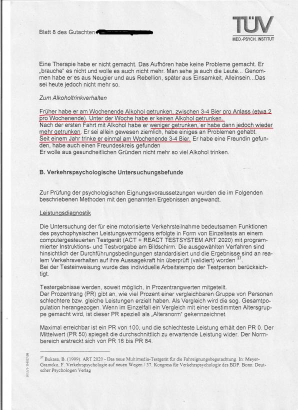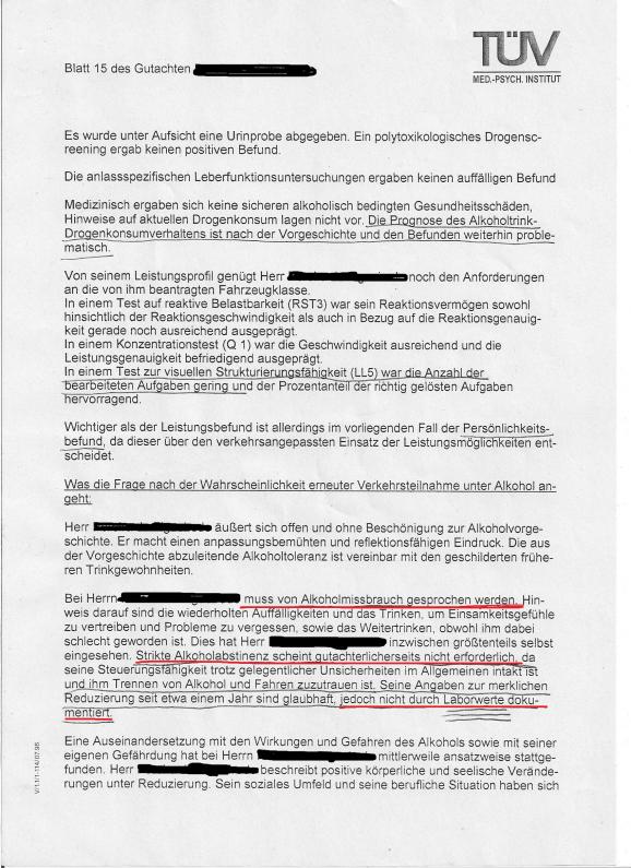 Aha, du hast Alkoholmissbrauch betrieben !? ... Hier kann dir der GA eine Suchtverlagerung unterstellen, dass bedeutet, die Anordnung einer Therapiemaßnahme.5. Wie ist der Umgang mit Alkohol gewesen?