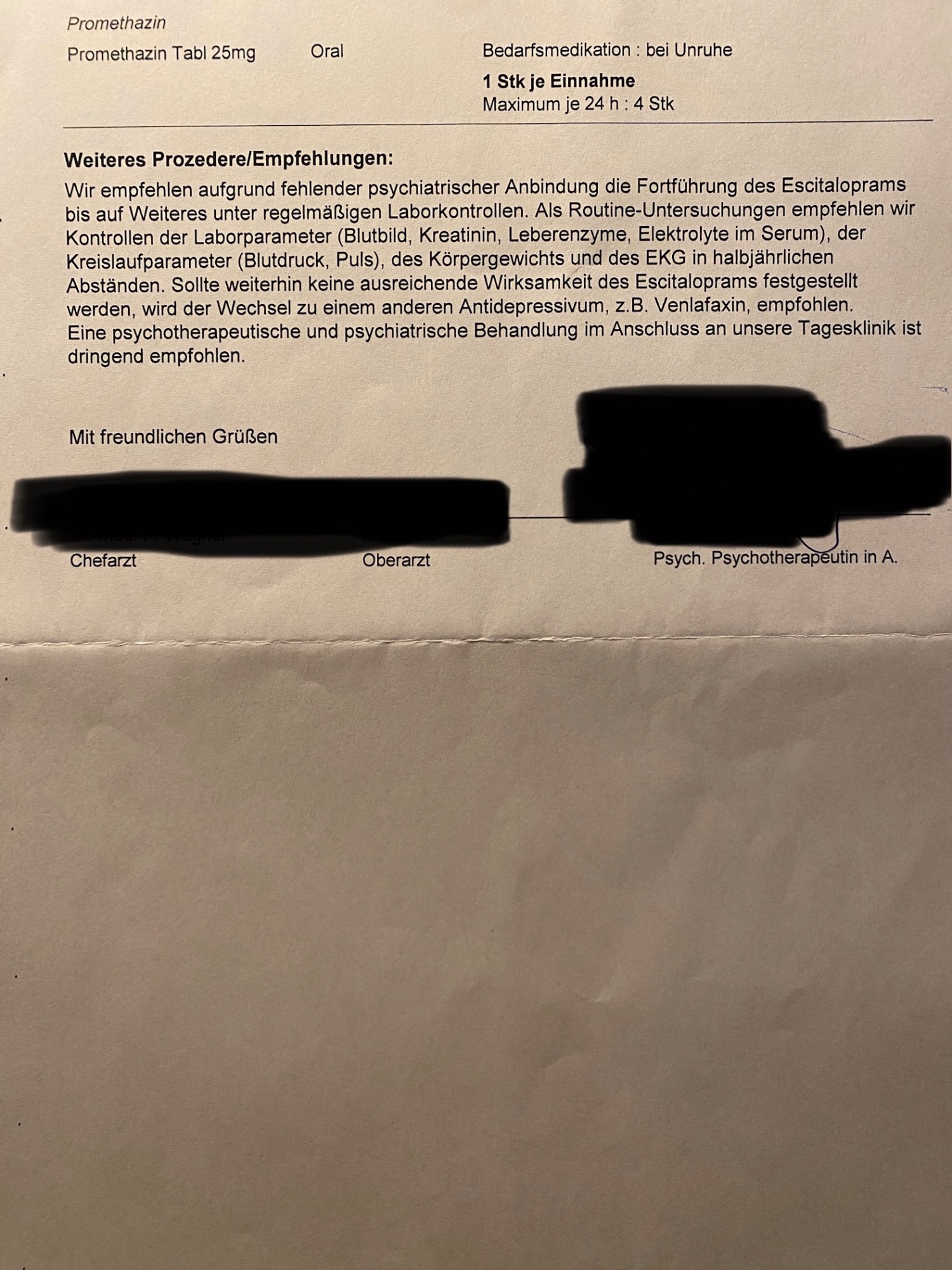Das ist der Brief von psychiatrische Tagesklinik. Kann ich das morgen Einfach abfotografieren und hochladen? Natürlich anonym unkenntlich gemacht.