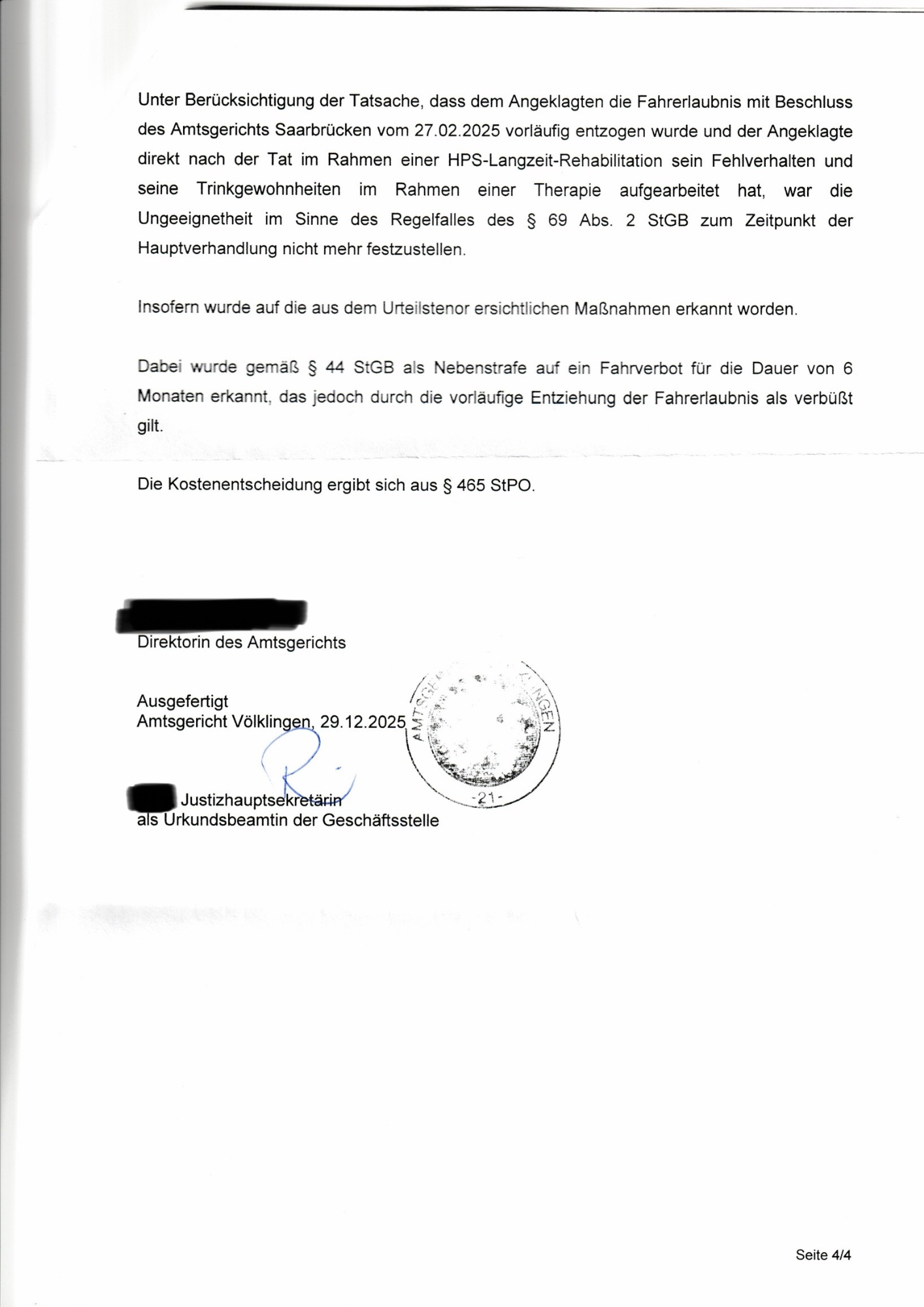 nach meiner heutigen Gerichtsverhandlung darf ich euch mitteilen, dass ich meine alte Fahrerlaubnis behalten darf. Mir wurde ein deklaratorisches Fahrverbot von 6 Monaten auferlegt, welche durch die lange Zeit der vorläufigen Entziehung bereits verbüßt ist. Meine Wiedereignung zum führen von Kraftfahrzeugen wurde ausdrücklich bejaht, am Ende der Verhandlung habe ich meinen Führerschein aus der Akte zurückgereicht bekommen. Das Urteil ist auch bereits rechtskräftig, da sowohl ich als auch die Staatsanwaltschaft keine Rechtsmittel dagegen einlegen werden.