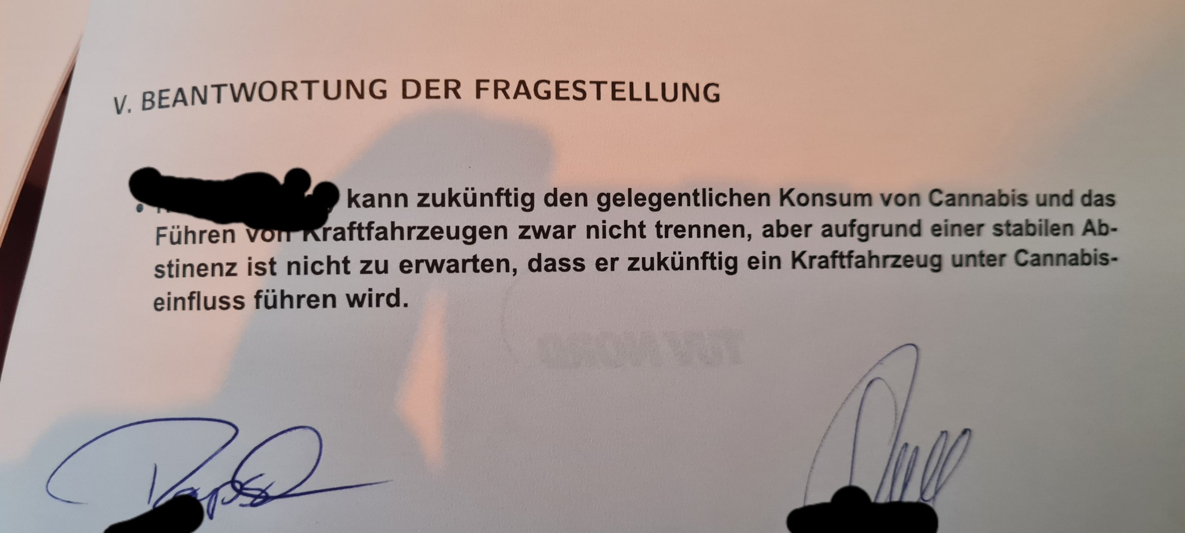 Du konntest den Gutachter gesprächlich wohl nicht ganz überzeugen (Trennvermögen), letztendlich hat dich aber deine Abstinenzzeit gerettet.Hey @Max, mein Gutachten kam heute. Ist die auf dem Bild zu sehende Antwort dass was das stva hören will? Also ist das positiv?