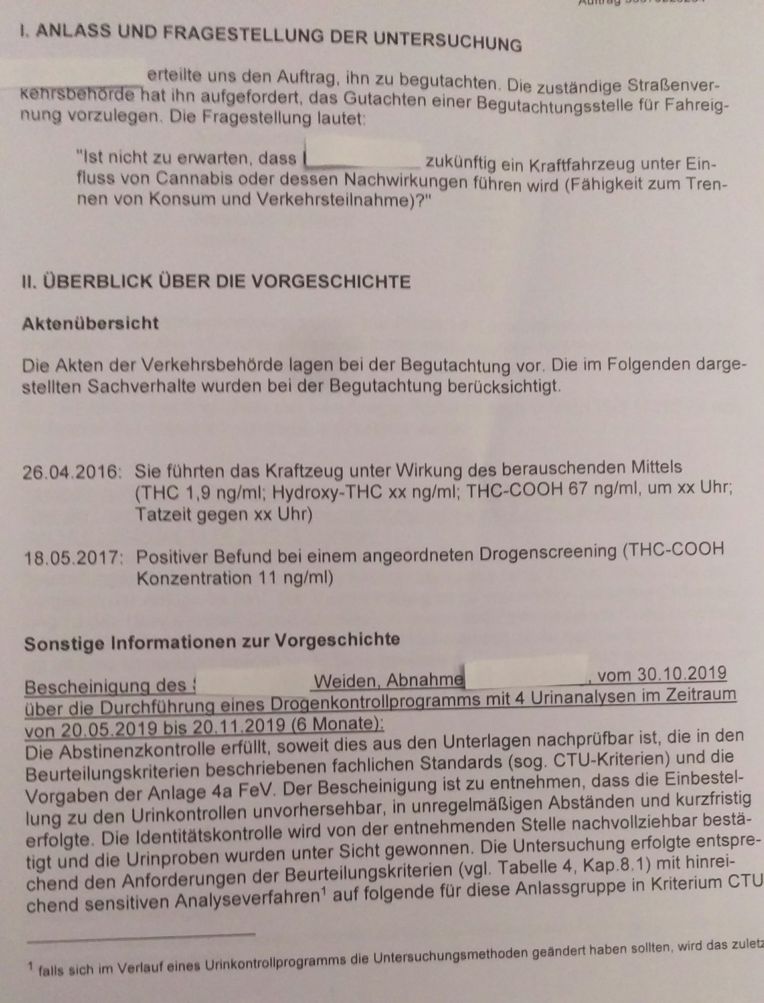 FB/MPU bei gelegentlichem Konsum (Schmerzen)