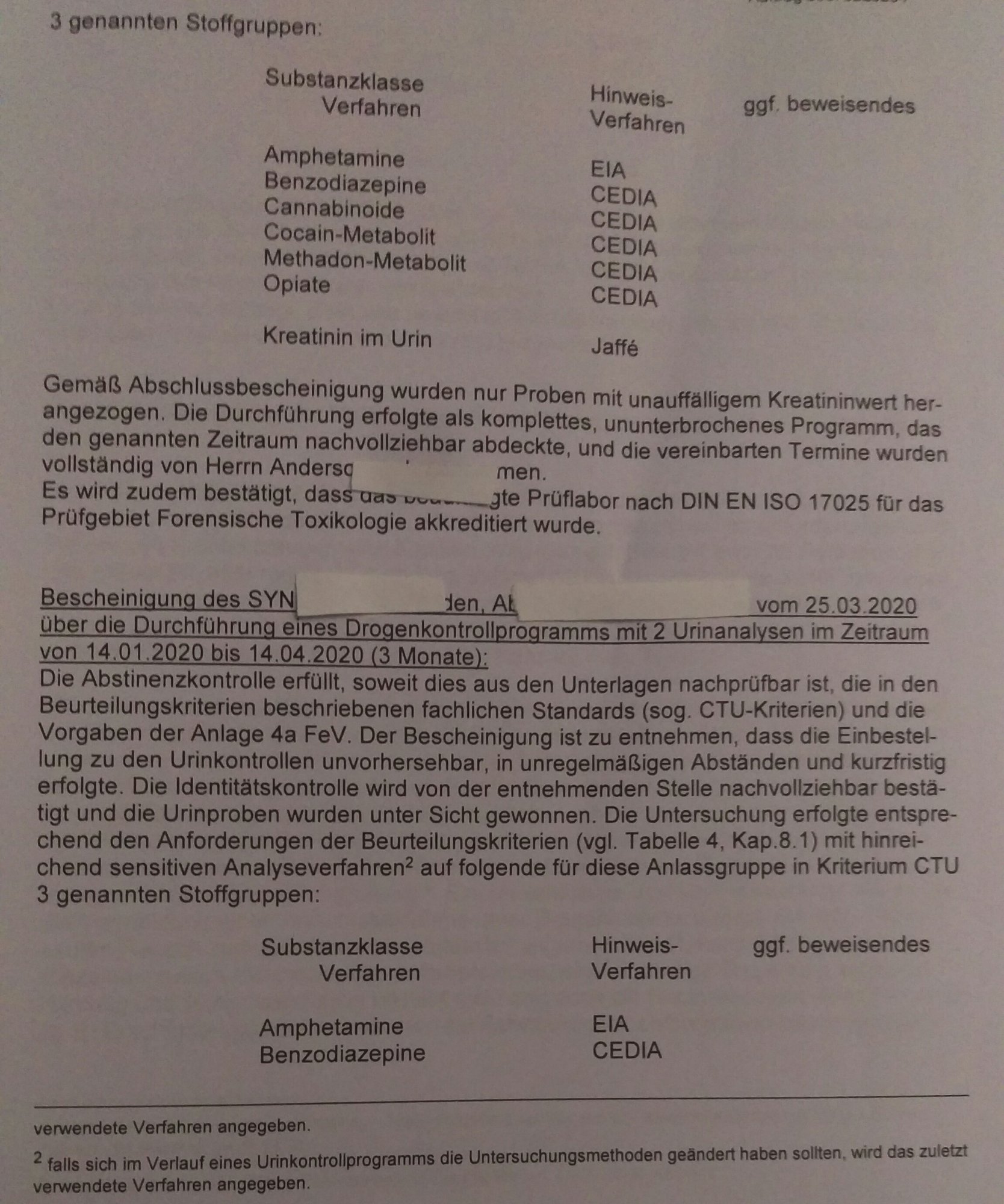 Komisch ist auch, dass du auf die Frage, ob du Abstinenz nachweisen kannst, mit "Ich habe Belege für 12 Monate geantwortet" hast.