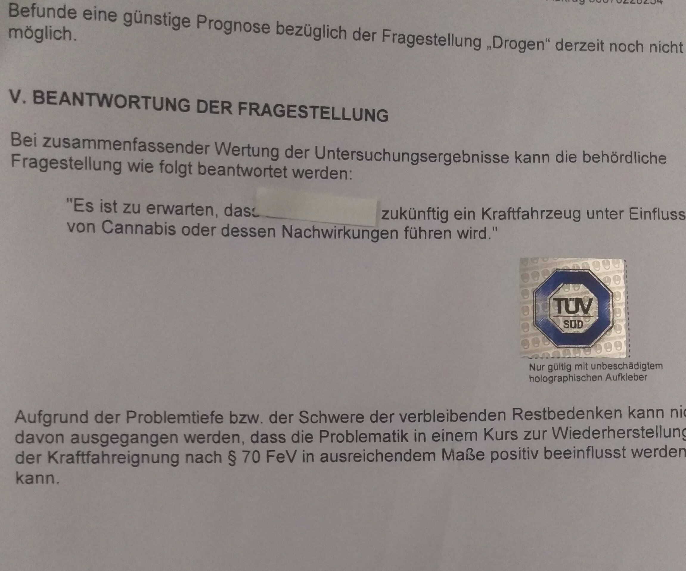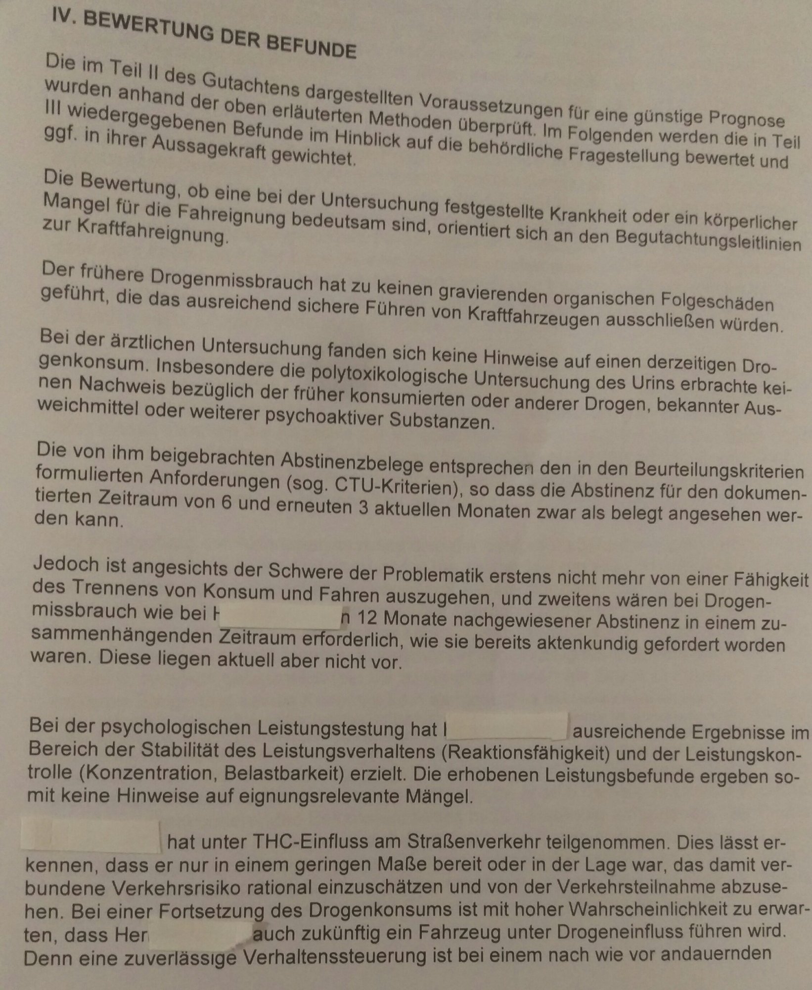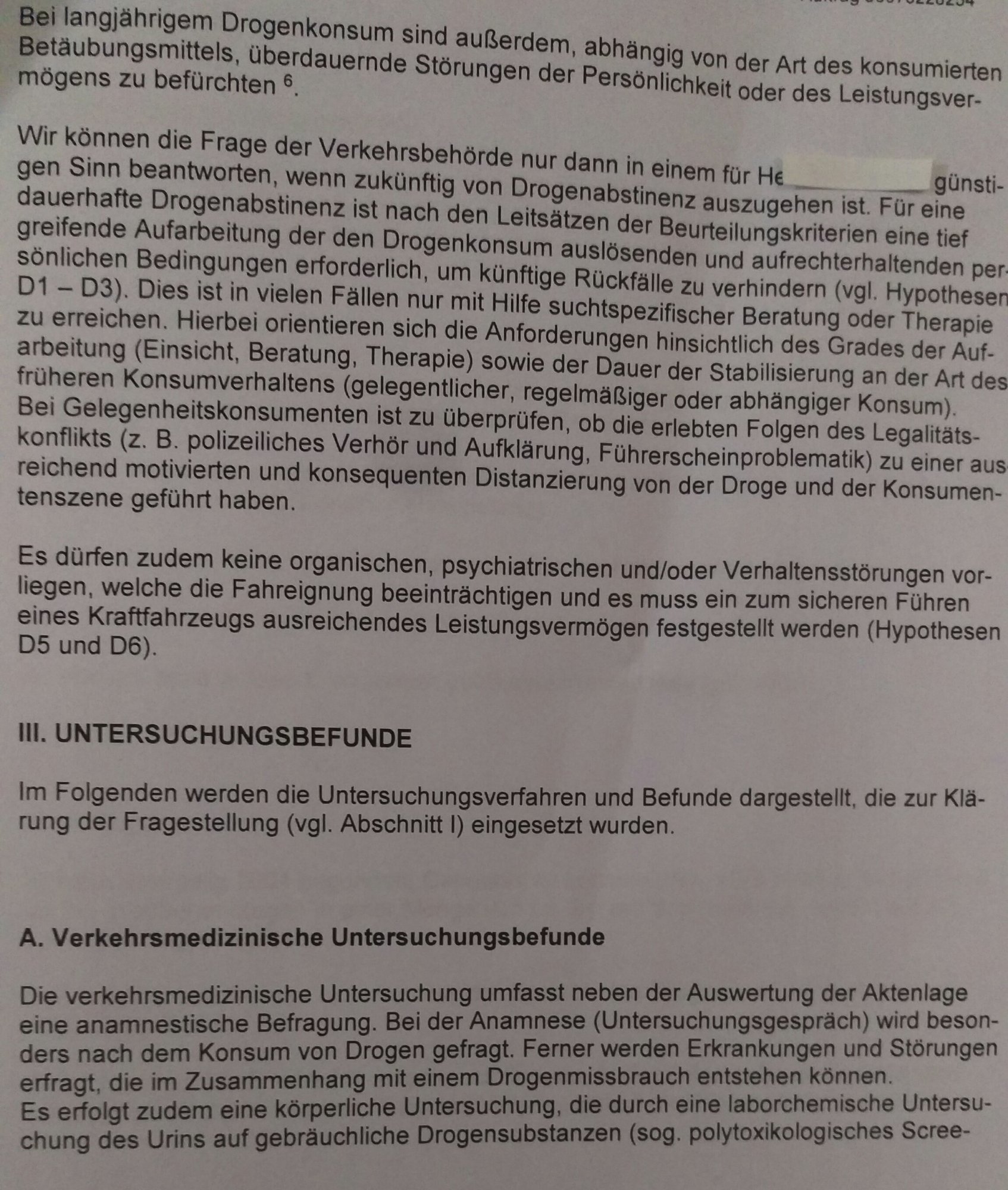 Jedoch wurde "eine schwere des Konsums" in Bezug genommen ... ich weiß jetzt nicht ob das aus deinen früheren Angaben entstanden ist. Folglich hat die FSST dir ja einen Abstinenznachweis von 12 Monaten verordnet. Irgend etwas muss da gewesen sein, sonst wäre diese Anordnung nicht gekommen.