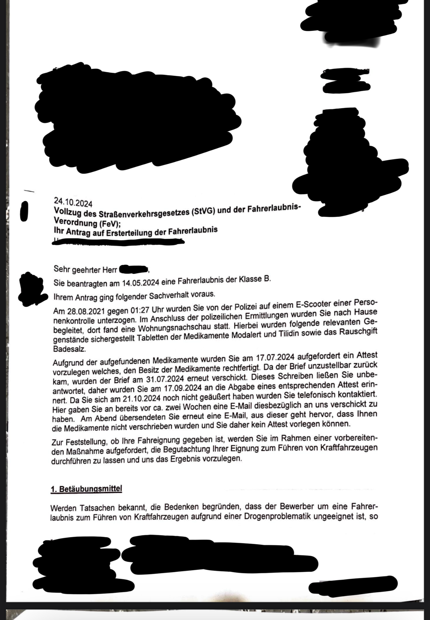 Doch ich wurde auf einem E Scooter mit 1.5ng THC und 0.57 Promille angehalten. In der Akte steht aber, dass das nach der neuen Gesetzgebung irrelevant ist. Bei einer Zimmerdurchsuchung wurden dann Modafinil, Tillidin, Badesalze und Cannabis Konsum Utensilien gefunden.