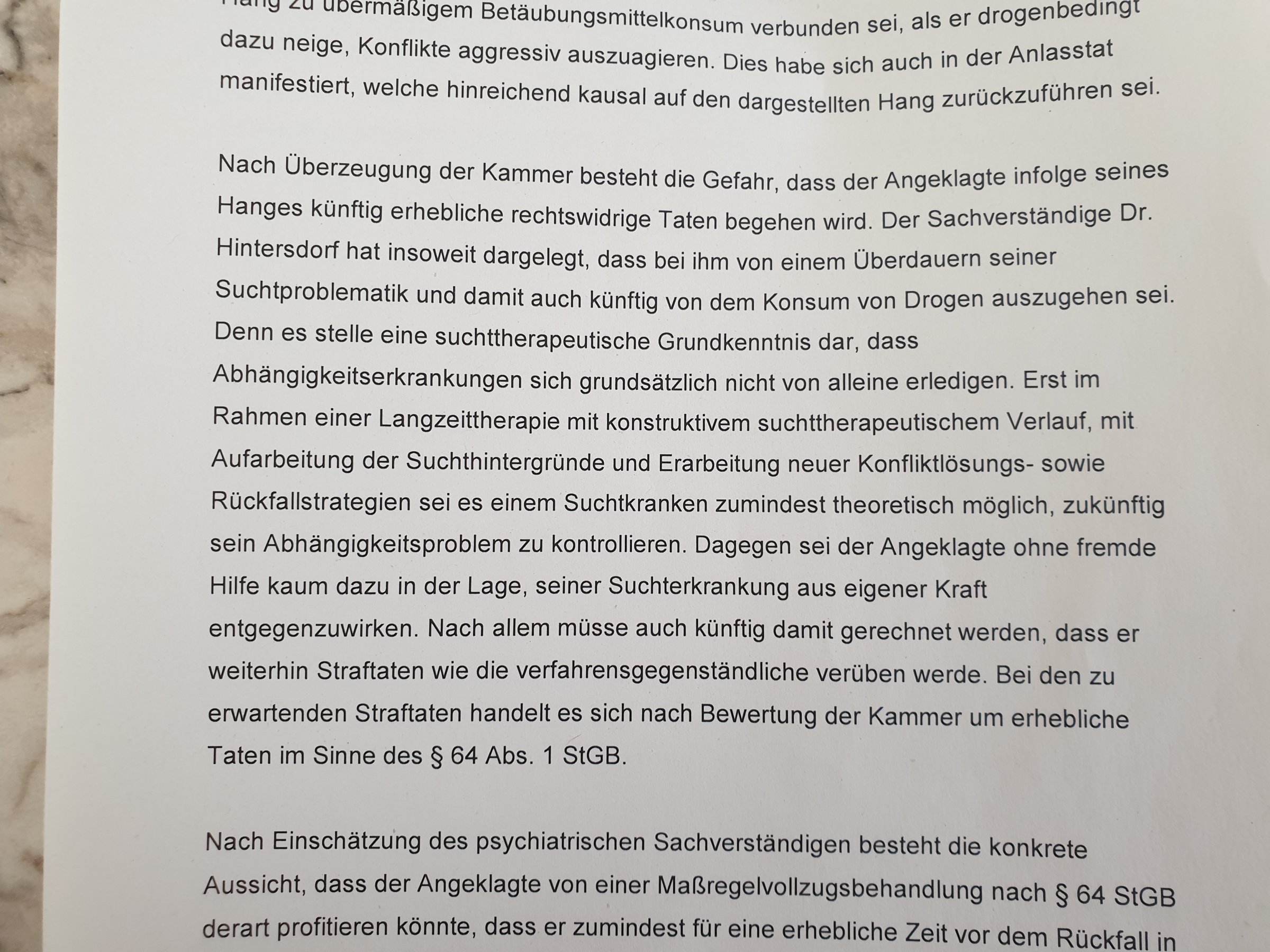 ich habe voR Gericht als ich verurteilt wurde immer angegeben meine Straftaten aufgrund von den Drogenkonsum begangen zu haben
