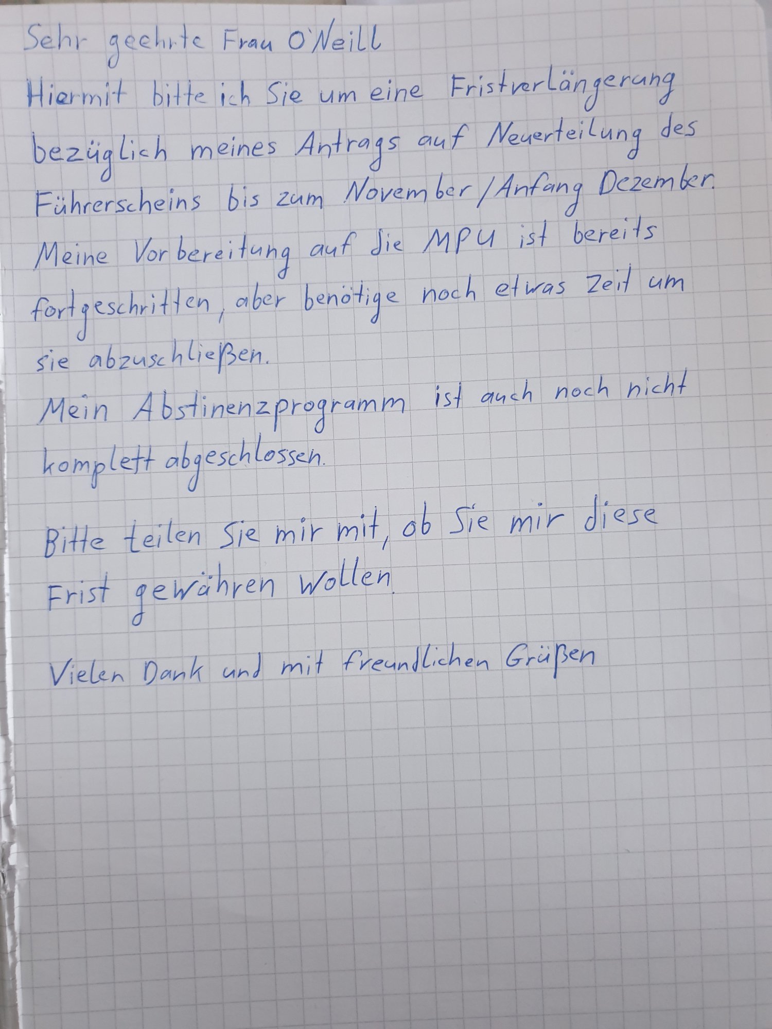 Und was ein Datum sollte ich am besten angeben mein abstines Kontrolle läuft bis zum 22.08.22 mit der mpu vorbereitung bin ich bis dahin fertig bei meiner VP