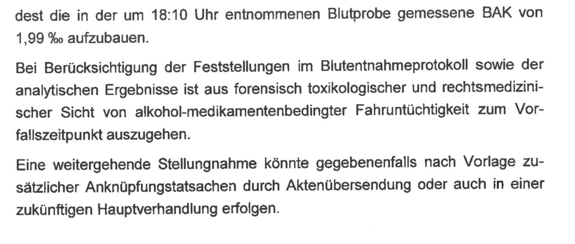 Polizei hat sich mit den Blutwerten gemeldet: läuft über Anwalt
