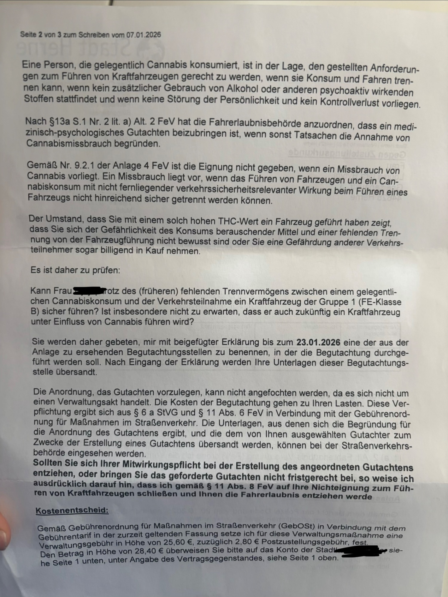 Okay, also es ist eine klassische MPU-Anordnung, also eine medizinisch-psychologische-Untersuchung mit normal kurzer Fristsetzung.