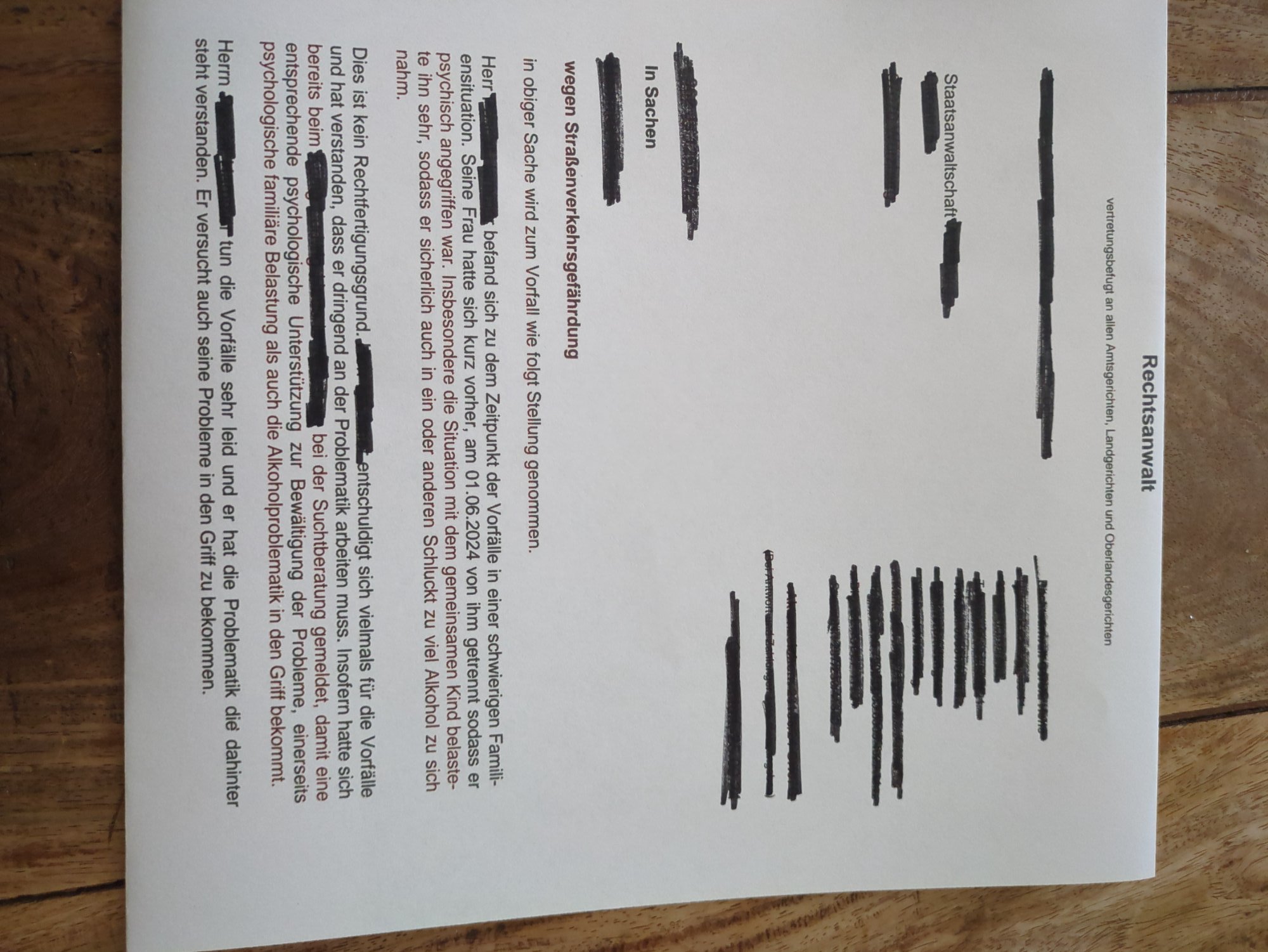 Desweiteren schrieb der Anwalt . Durch die Trennung befand ich mich in einer ausnahme Situation und das ich vorher nie aufgefallen bin um die Kuh vom Eis zu holen, da er mir gesagt hatte das es auch auf eine Freiheitsstrafe heraus laufen könnte.