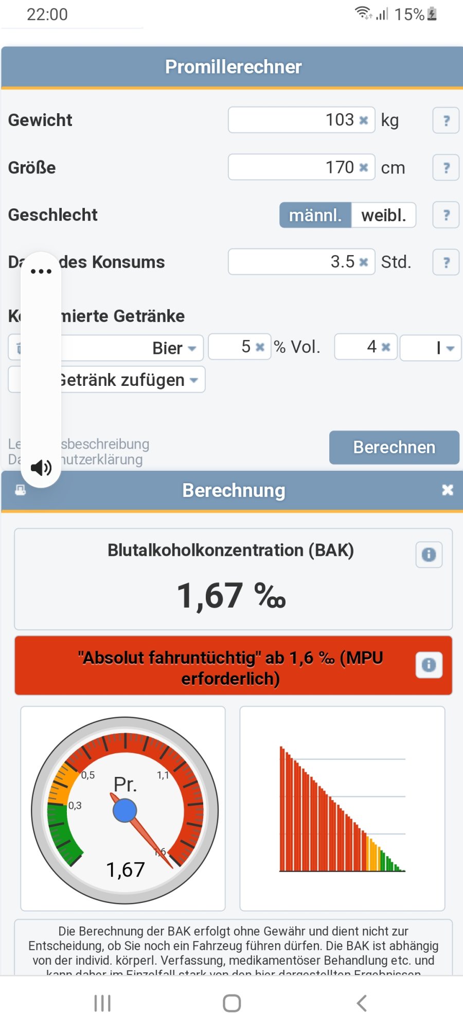 Ja, habe dort 4 Liter eingegeben. Deine Äußerung "ok, dann haben wohl alle Recht und ich war ich halt besoffen", läßt darauf schließen, daß du dich nicht besoffen gefühlt hast und eher noch deutlich höhere Mengen gewohnt warst.