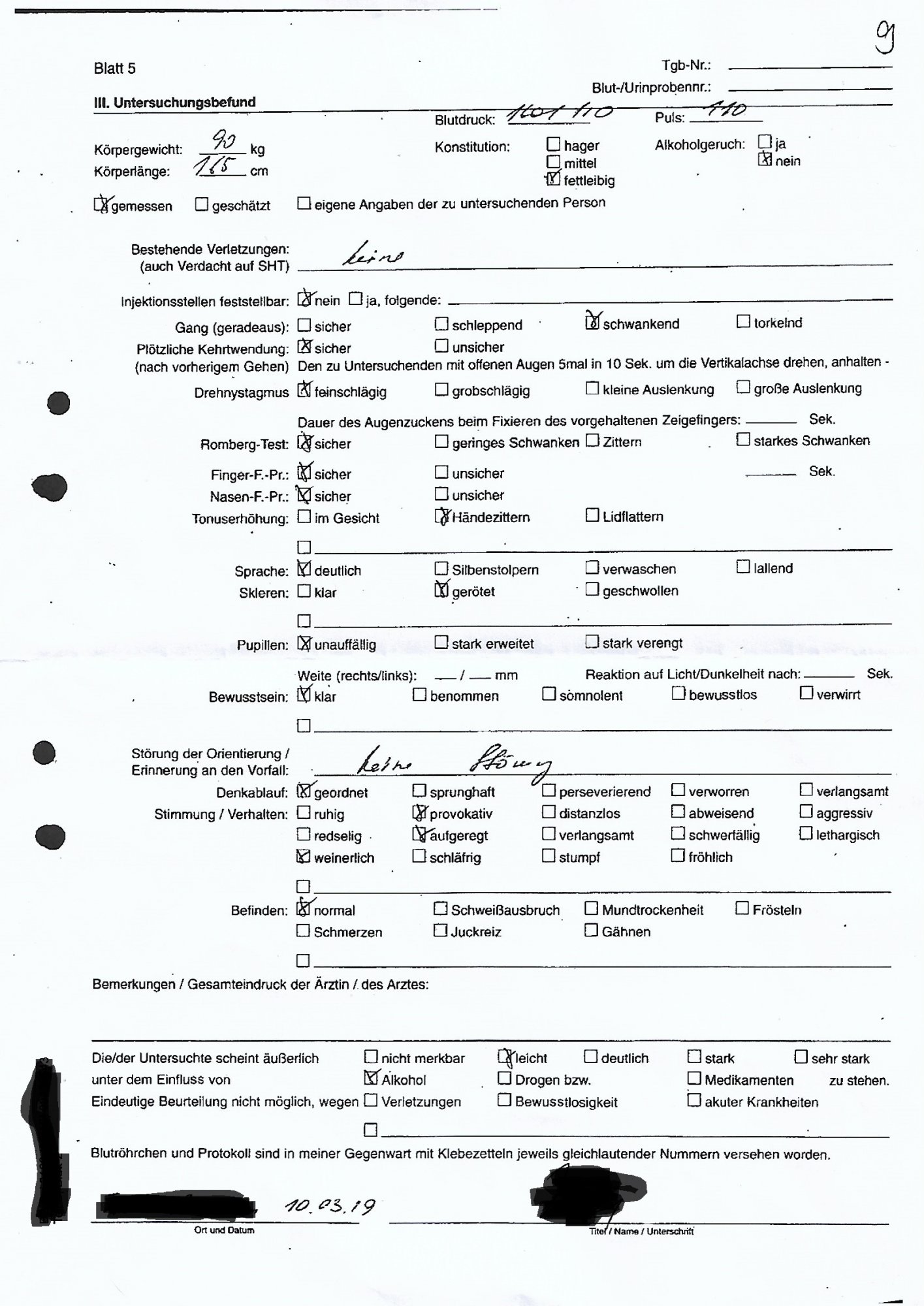 Bei der Blutentnahme um 1.55 Uhr waren es dann 1,96 Promille.