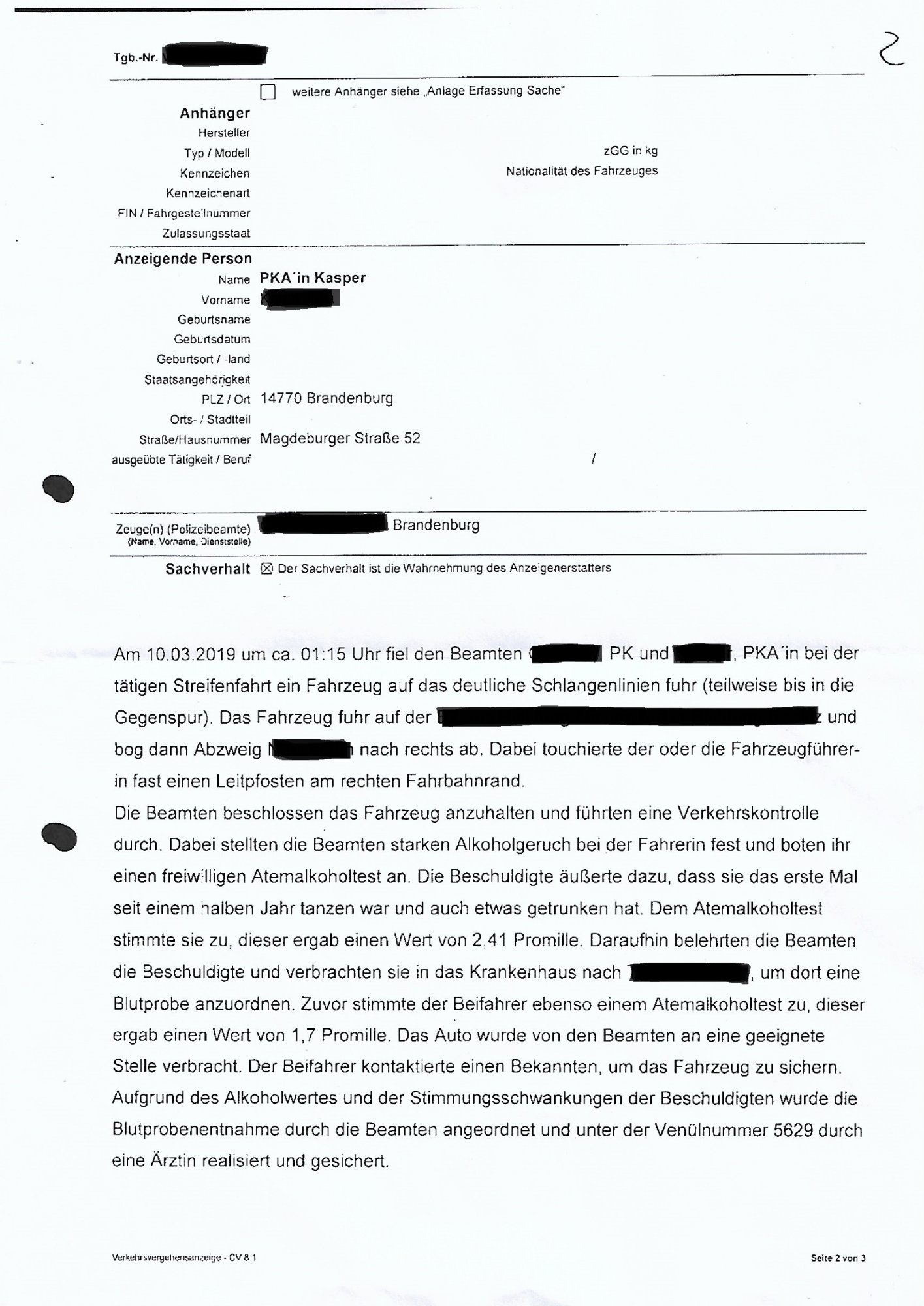 1. Beschreiben Sie den Tag Ihrer Trunkenheitsfahrt aus eigener Sicht mit Datum und Uhrzeiten.