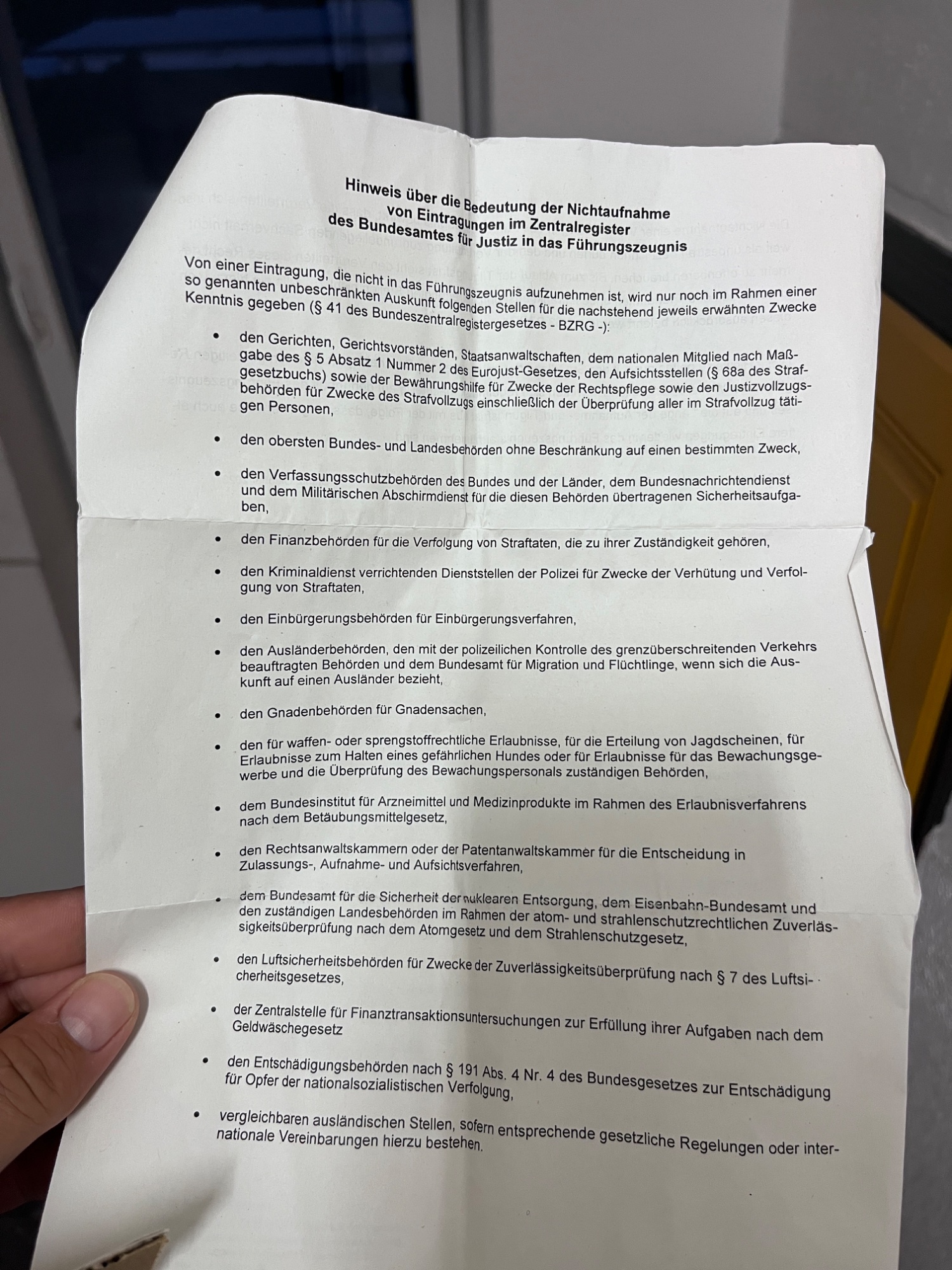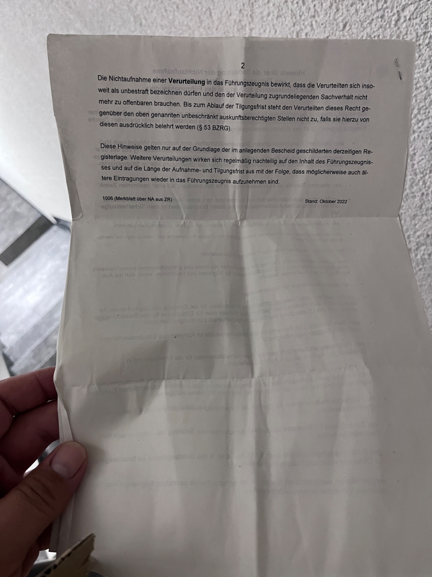 Eben, darum schrieb ich ja:Wie man dem Schreiben entnehmen kann sind nächstes Jahr Ende Juli alle Sachen aus dem Führungszeugnis raus